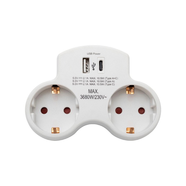 A TPF2USBC hálózati töltő ideális választás minden otthonba és irodába, ahol fontos a hatékony töltés, a megbízható csatlakozás és a maximális biztonság. A készülék USB-C és USB-A csatlakozóval is rendelkezik, amelyek 5 V DC / max. 2,1 A teljesítményt biztosítanak, emellett 2 db földelt hálózati aljzatot kínál gyermekvédő zsalukkal, így több eszköz egyidejű használata is kényelmesen megoldható.