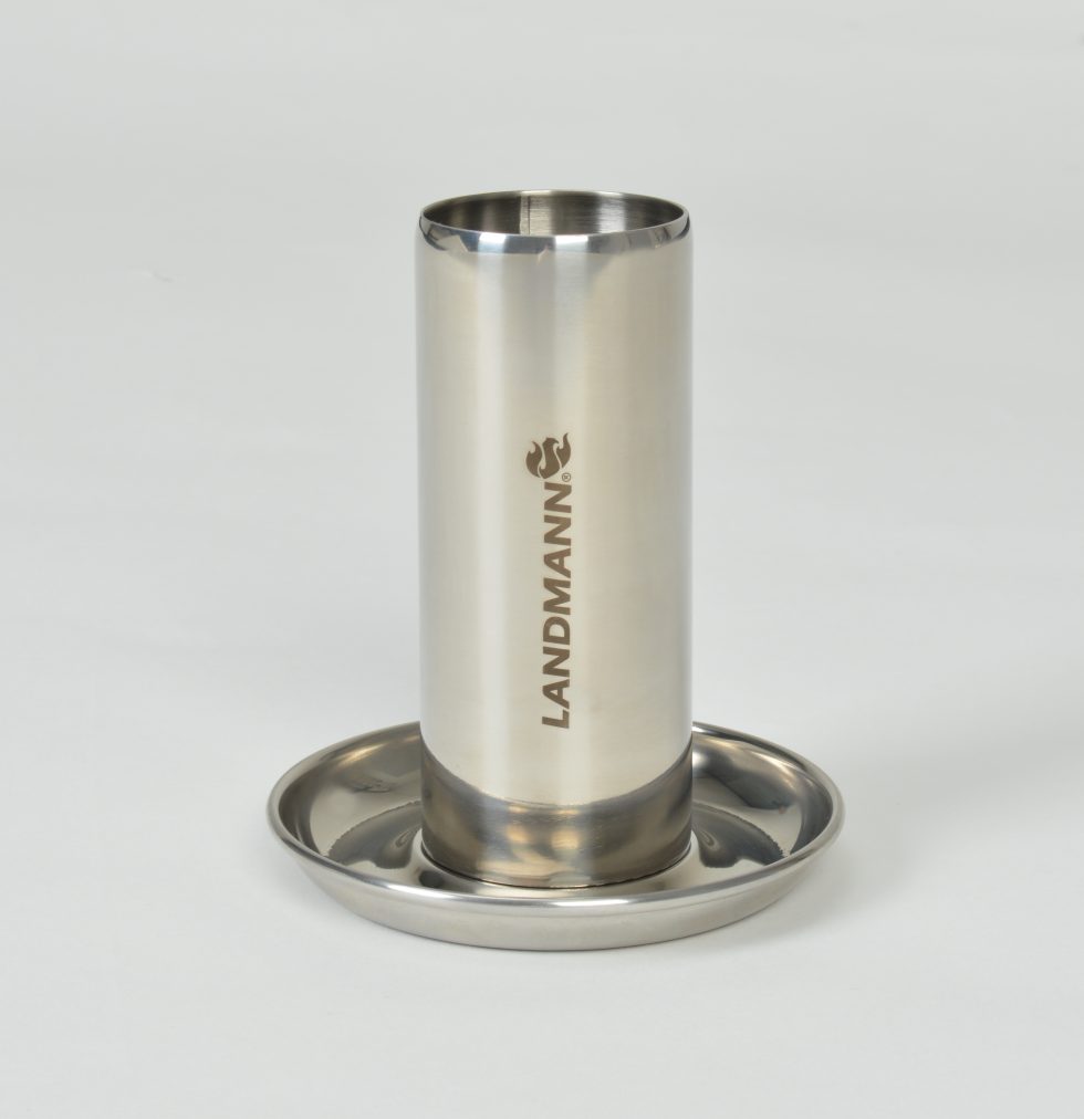 A Landmann álló grillcsirke sütő rozsdamentes acélból készült. A tartály 250 ml űrtartalmú, melybe folyadékot lehet tölteni (pl bor, sör), így még ízletesebb grillcsirke készíthető. A sütési folyamat egyszerű: a tartályt töltse meg ízlés szerint folyadékkal, a tartóra ültesse rá a csirkét, majd kezdődhet a sütés. Talpazata masszív, stabil sütést biztosít. Kiválóan használható grillkészülékeken és a konyhai sütőben egyaránt.