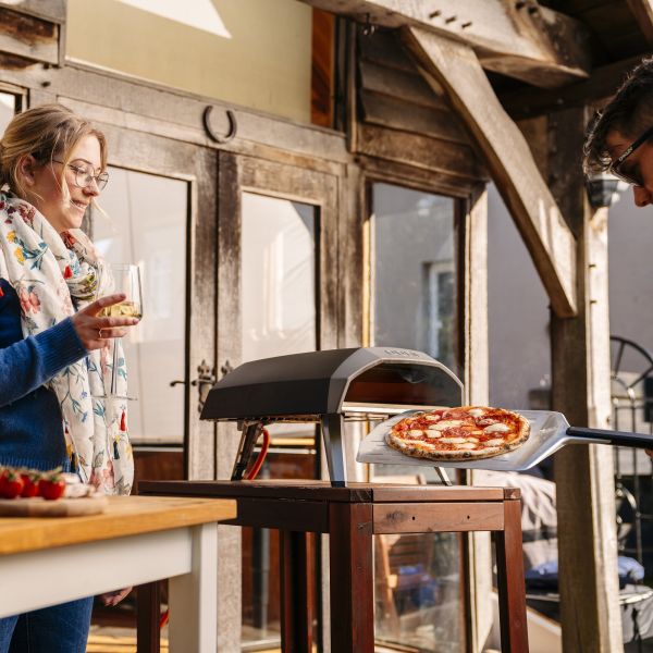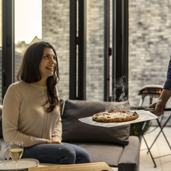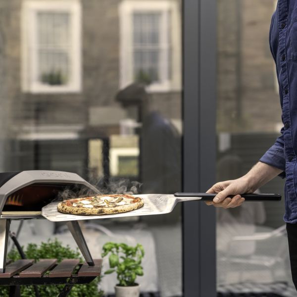 Az Ooni perforált pizzalapátja kiváló minőségű és problémamentes módot kínál a pizzák mozgatására, forgatására és kivételére a sütőből. A lapát kúpos szélével csúsztassa közvetlenül a pizzalapok alá. Ez a termék mosogatógépben nem mosható. Kerülje a súrolószereket. Ne hagyja a pizzalapátot hosszabb ideig magas hőmérsékletnek kitéve.