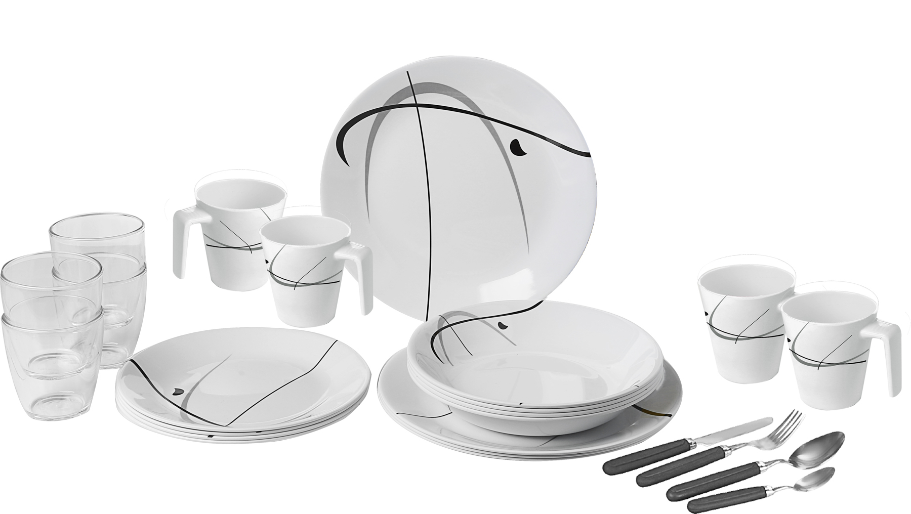 • 4 x 4 db evőeszköz (kés, villa, kanál, teáskanál).