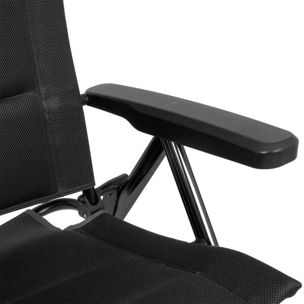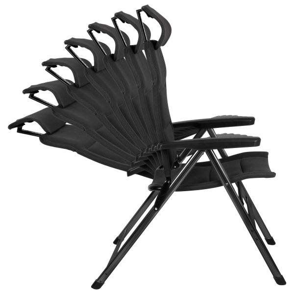 Magasságban állítható fejtámlájának (háttámla hossza 110–117 cm) köszönhetően egyénileg igazodik az Ön üléspozíciójához és pihentető hátradőlést tesz lehetővé – tábortűznél, horgászat közben vagy a kertben. A masszív váz és a kiváló minőségű anyagok garantálják a tartós minőséget és a stabilitást szinte minden talajon. Ugyanakkor a fejtámla könnyen lehajtható, így a szék helytakarékosan szállítható és tárolható.