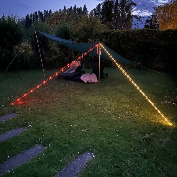 Ez az 5 méter hosszú, dekoratív feszítőkötél beépített LED-világítással rendelkezik a jobb láthatóság és a kellemes hangulat érdekében a sátor körül. A kötél teljes hosszában végigfutó folyamatos megvilágítás nemcsak vonzó megjelenést biztosít, hanem növeli a biztonságot sötétben – ideális kempingekbe, fesztiválokra vagy a saját kertedbe. Az integrált karabinernek köszönhetően a kötél gyorsan és biztonságosan rögzíthető. Kényelmesen tölthető USB-A kábellel. Nyolc különböző világítási móddal – a lágy, állandó fénytől a feltűnő villogó fényig – a megvilágítás a hangulatodhoz és a helyzethez igazítható.