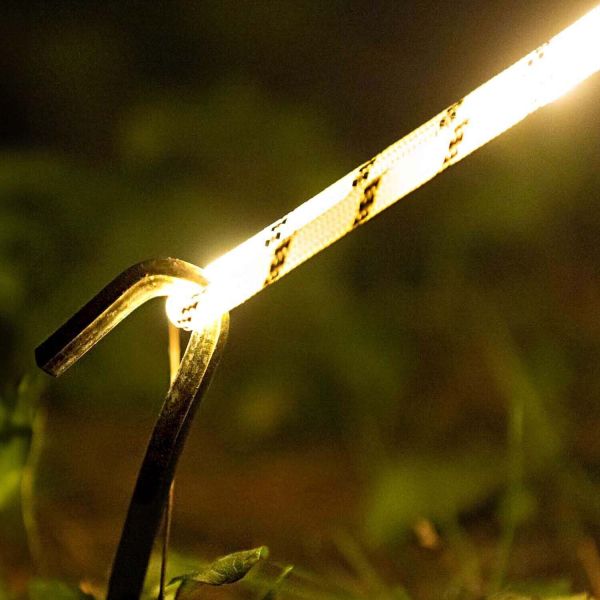Előnyök: Meleg fehér fény a kellemes hangulatért. 6 m hosszúság a sokoldalú használathoz. Folyamatosan szabályozható az optimális fényerő érdekében. USB-C csatlakozó a rugalmas áramellátáshoz külső akkumulátoron, mobiltelefon-adapteren vagy fali aljzaton keresztül. Időjárásálló anyag a megbízható kültéri használathoz. Akár 150 kg-os teherbírás – ideális kempingezéshez és szabadtéri tevékenységekhez. Praktikus szárazzsák a külső akkumulátor biztonságos tárolására és védelmére.