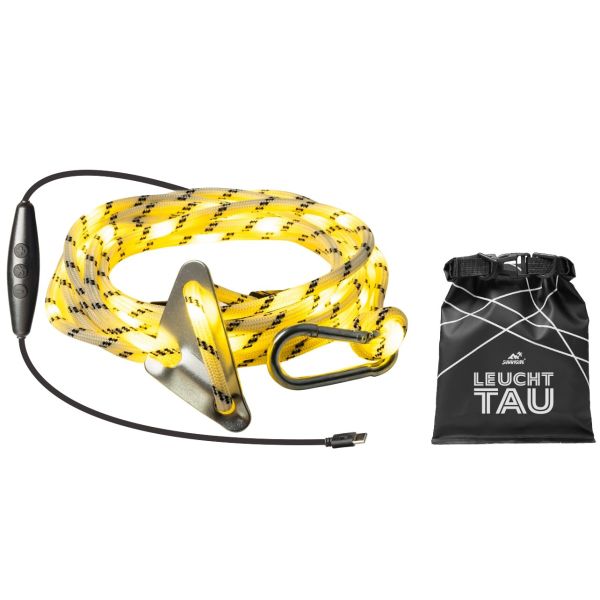 Időjárásálló anyaga alkalmas napellenzők kifeszítésére vagy ruhaszárító kötélnek. A LED-es kötél fényerőszabályozóval és USB-C-csatlakozóval van ellátva. Tartozéka egy vízhatlan tárolótáska, mely egy Powerbank védelmére is használható.