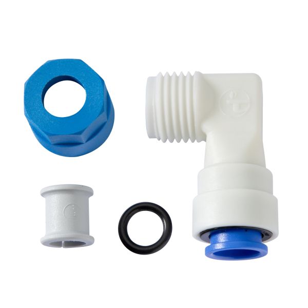 John Guest könyök hidegvízcsatlakozó a Truma 1994/07 és 2014/12 között gyártott, 3-as sorozatú B 10/14-es gázbojleréhez, Truma elektromos bojleréhez, Truma combi 4(E), combi 6(E) fűtőkészülékekhez.