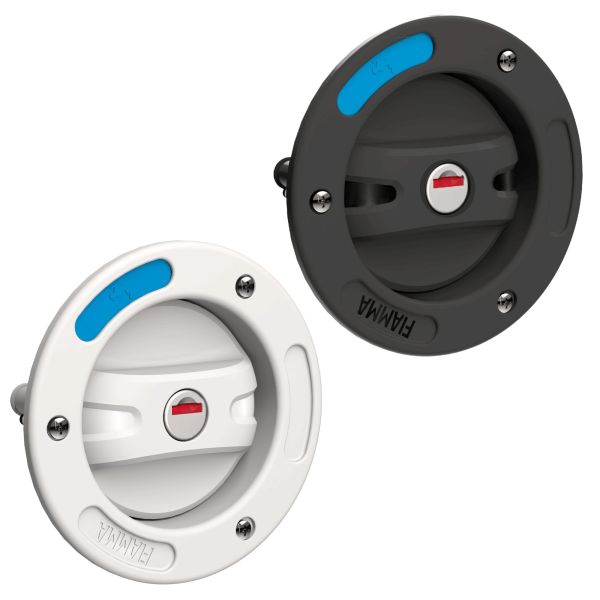 Beépítési átmérő: 80 mm. Csatlakozó tömlő átmérő: 40 mm. Kulccsal zárható. Fehér vagy fekete színben.